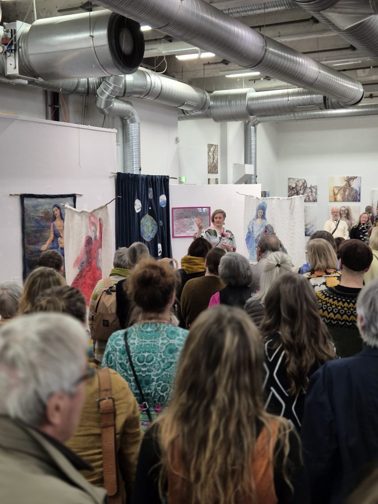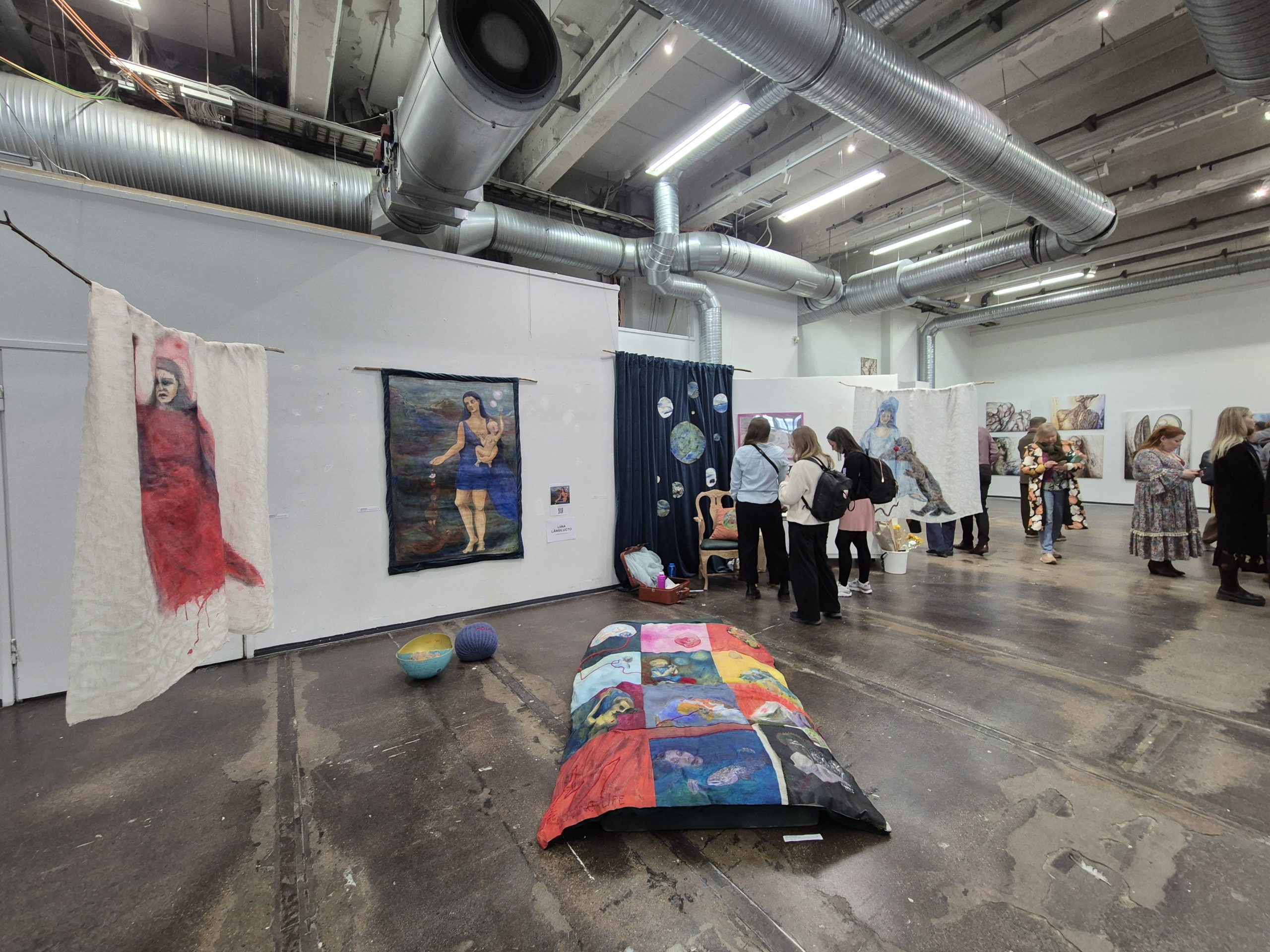 - Madonna of Biodiversity, painting, 160 cm × 110 cm, oil paint and embroidery on old linen fabric. This piece plays with traditional church art and invites reflection on what we should truly worship. The symbolism of the Madonna of Biodiversity highlights the abundance of life, the value of biodiversity, and humanity’s role in it all.